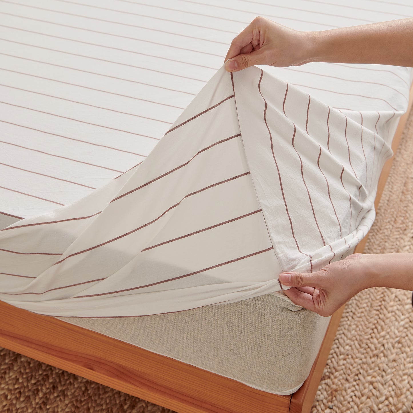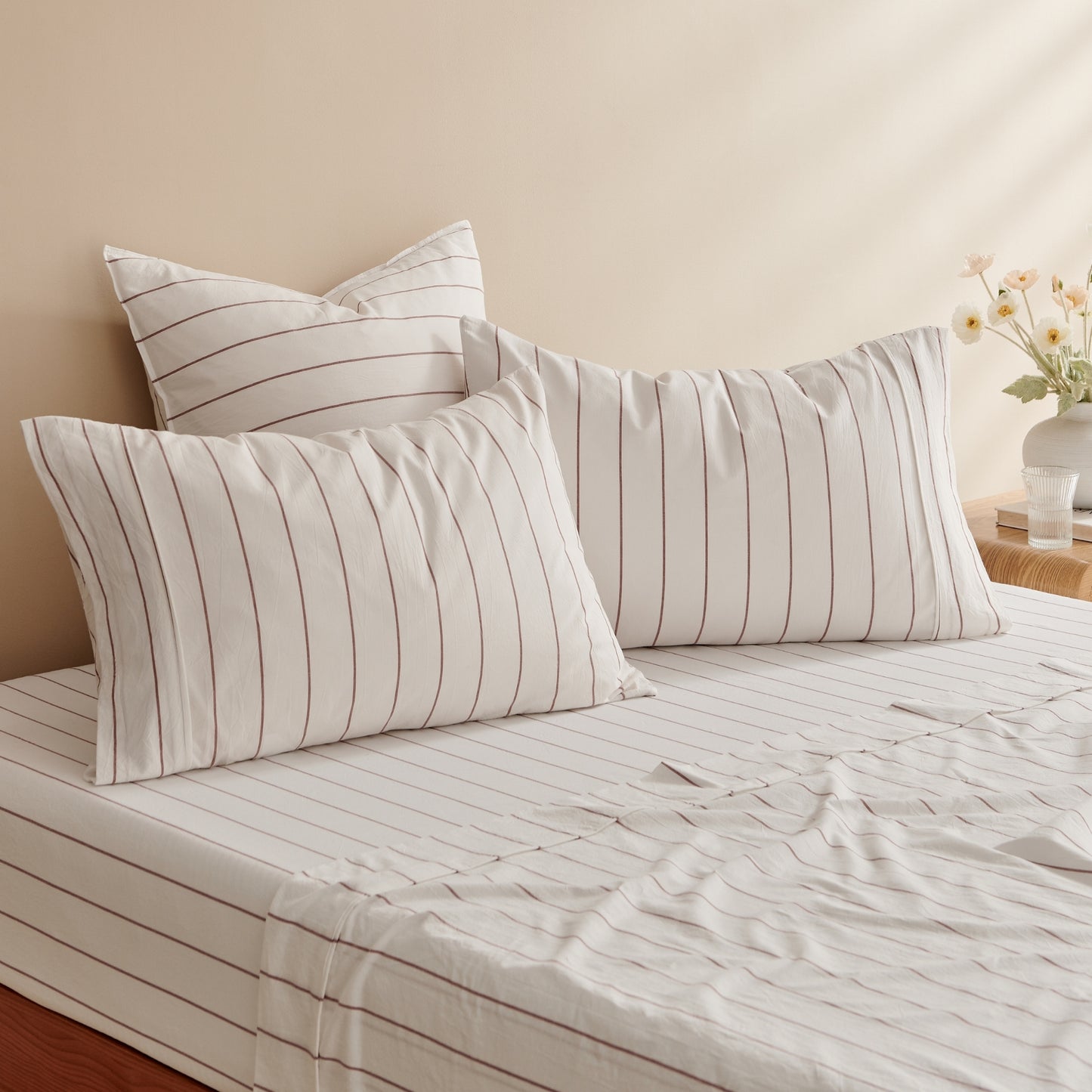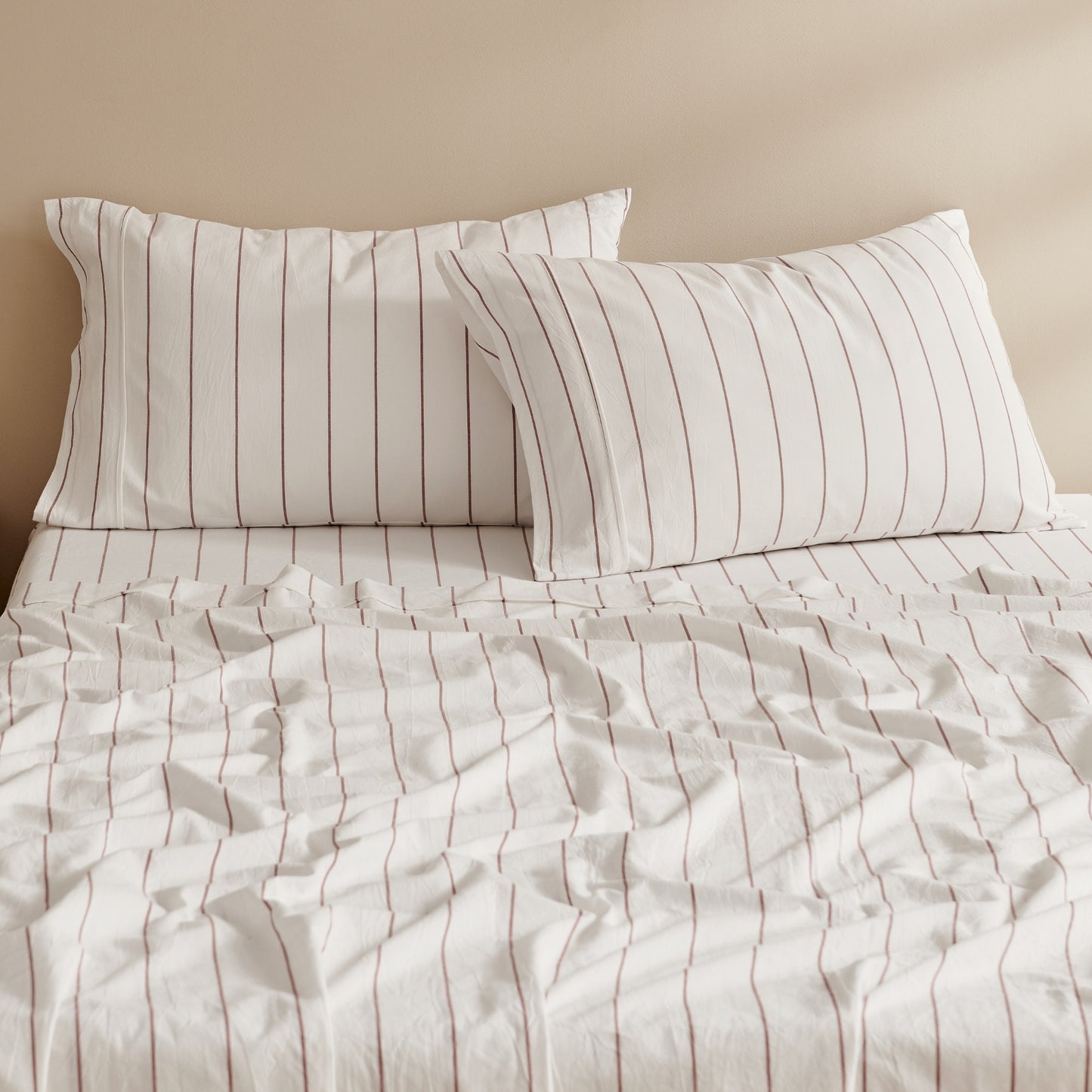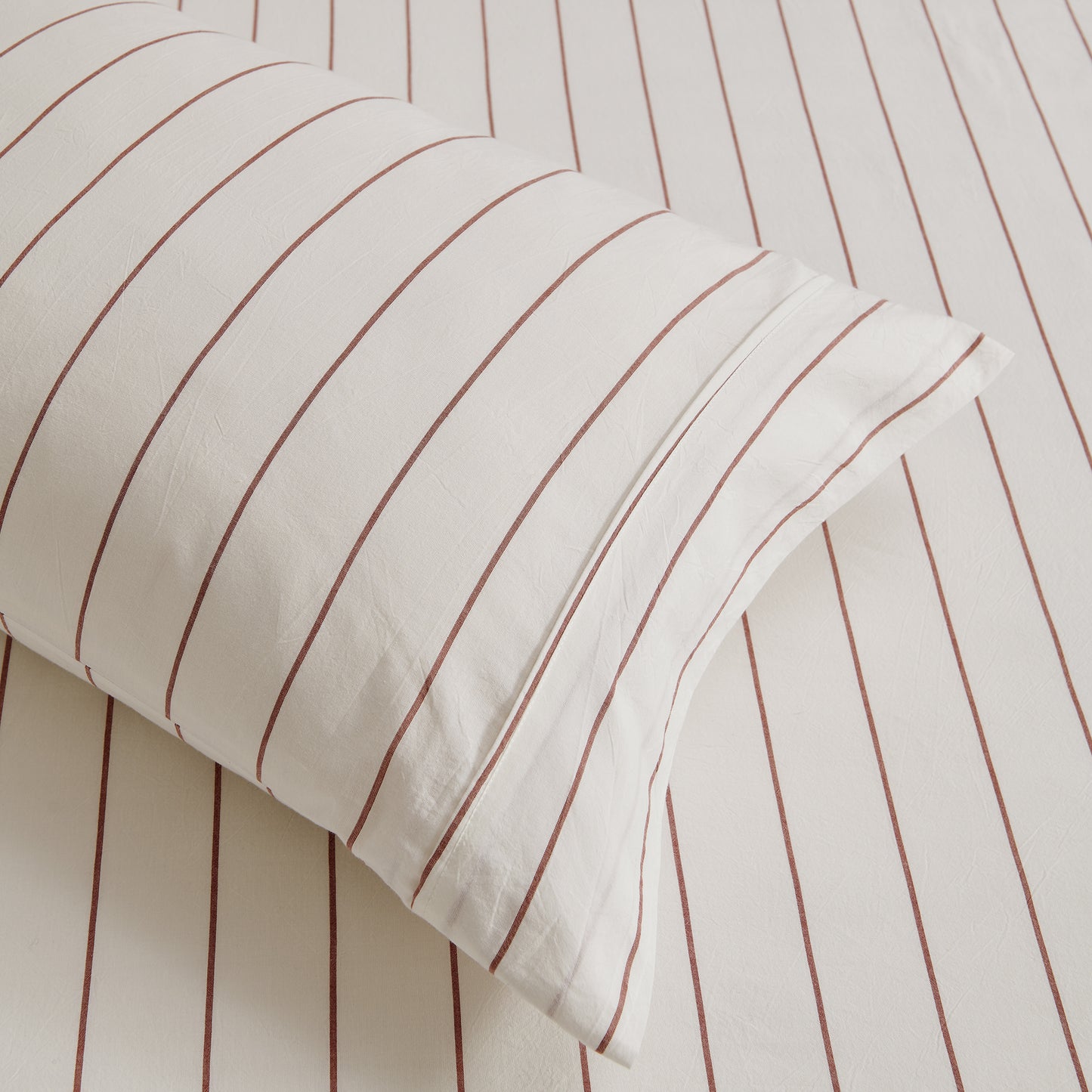 Rumi Washed Cotton Sheet Set White with Rust Stripe
