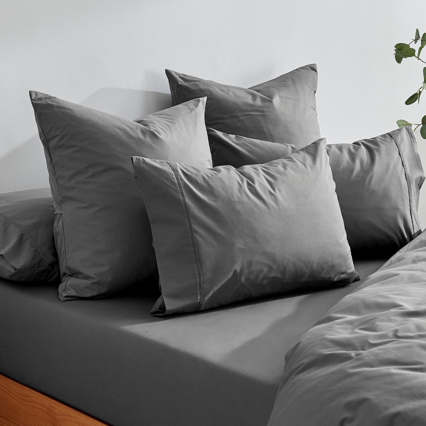 300TC Cotton Percale Standard Pillowcase Charcoal Twin Pack