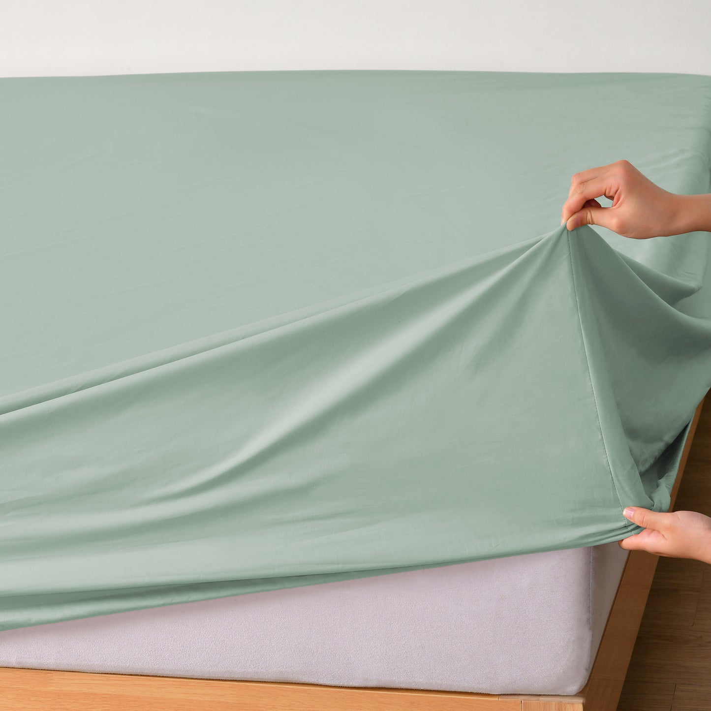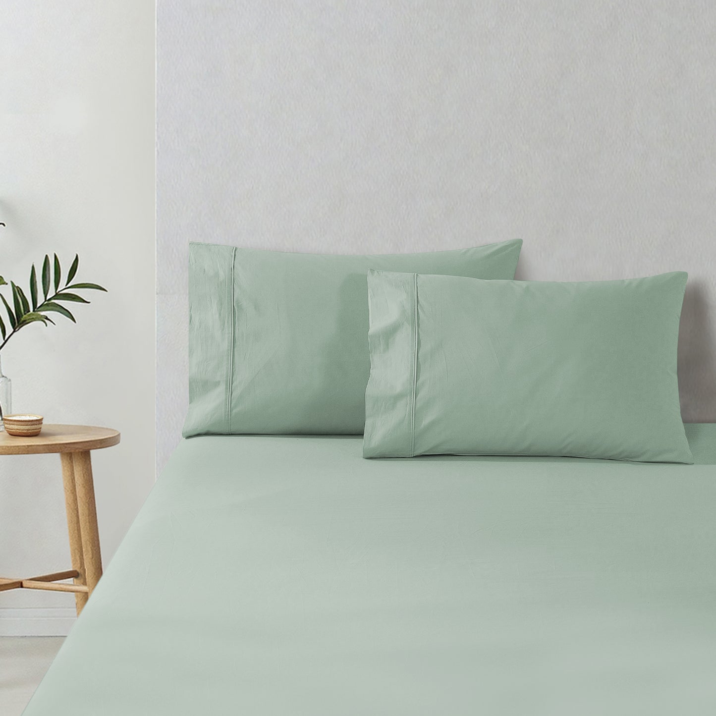 300TC Cotton Percale Combo Fitted Sheet Set Sage