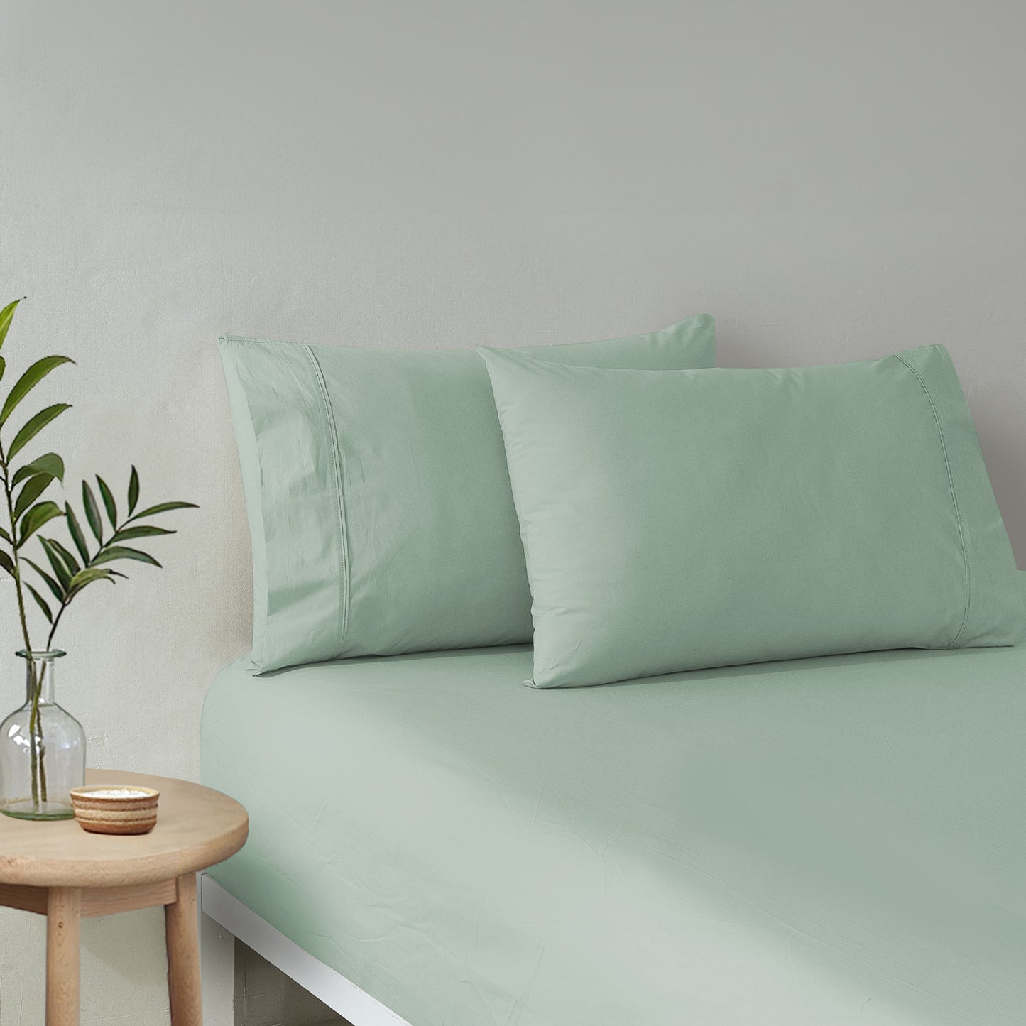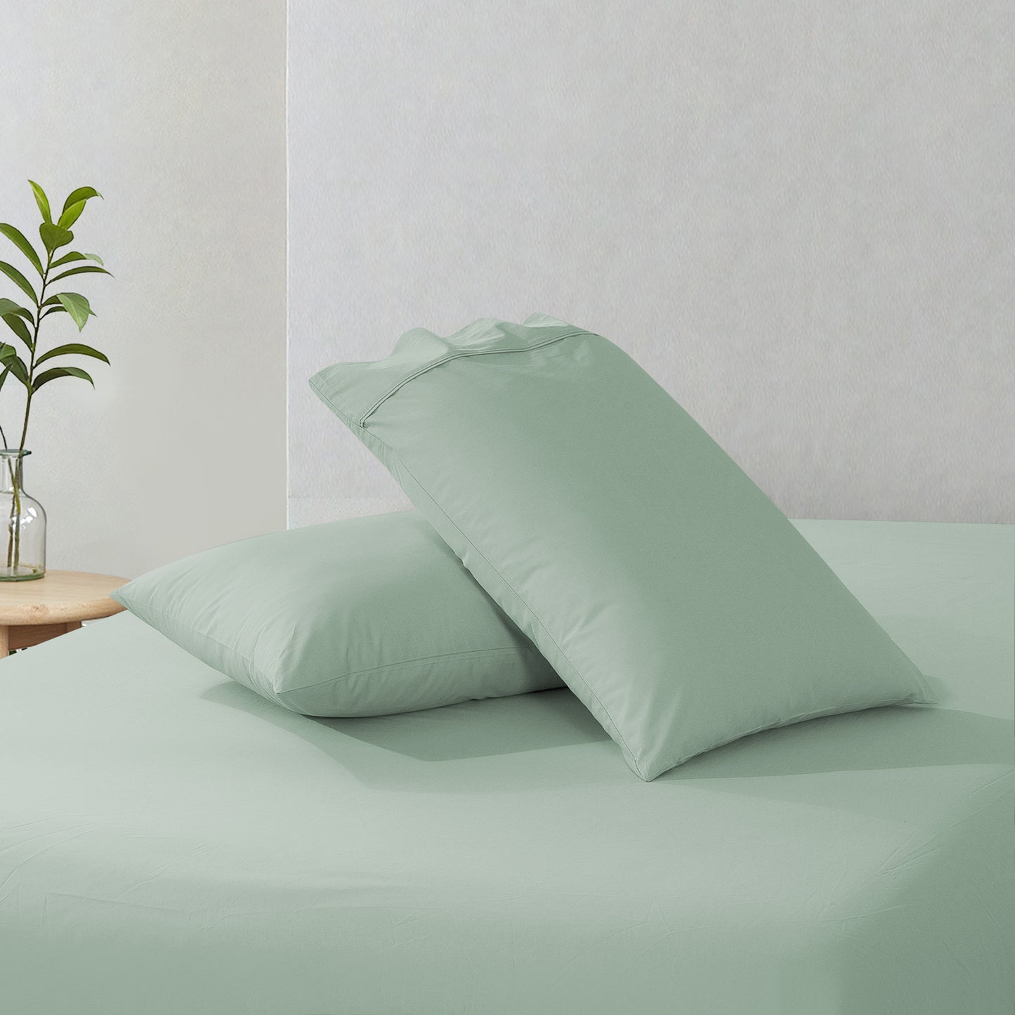 300TC Cotton Percale Standard Pillowcase Sage Twin Pack