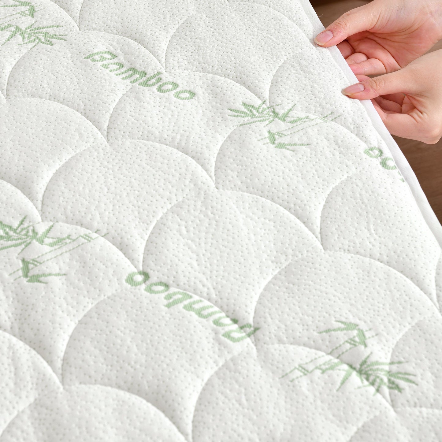 Top Fabric: luxuriously filled 240GSM - 35% Bamboo Rayon, 65% Polyester Jacquard knitted fabric