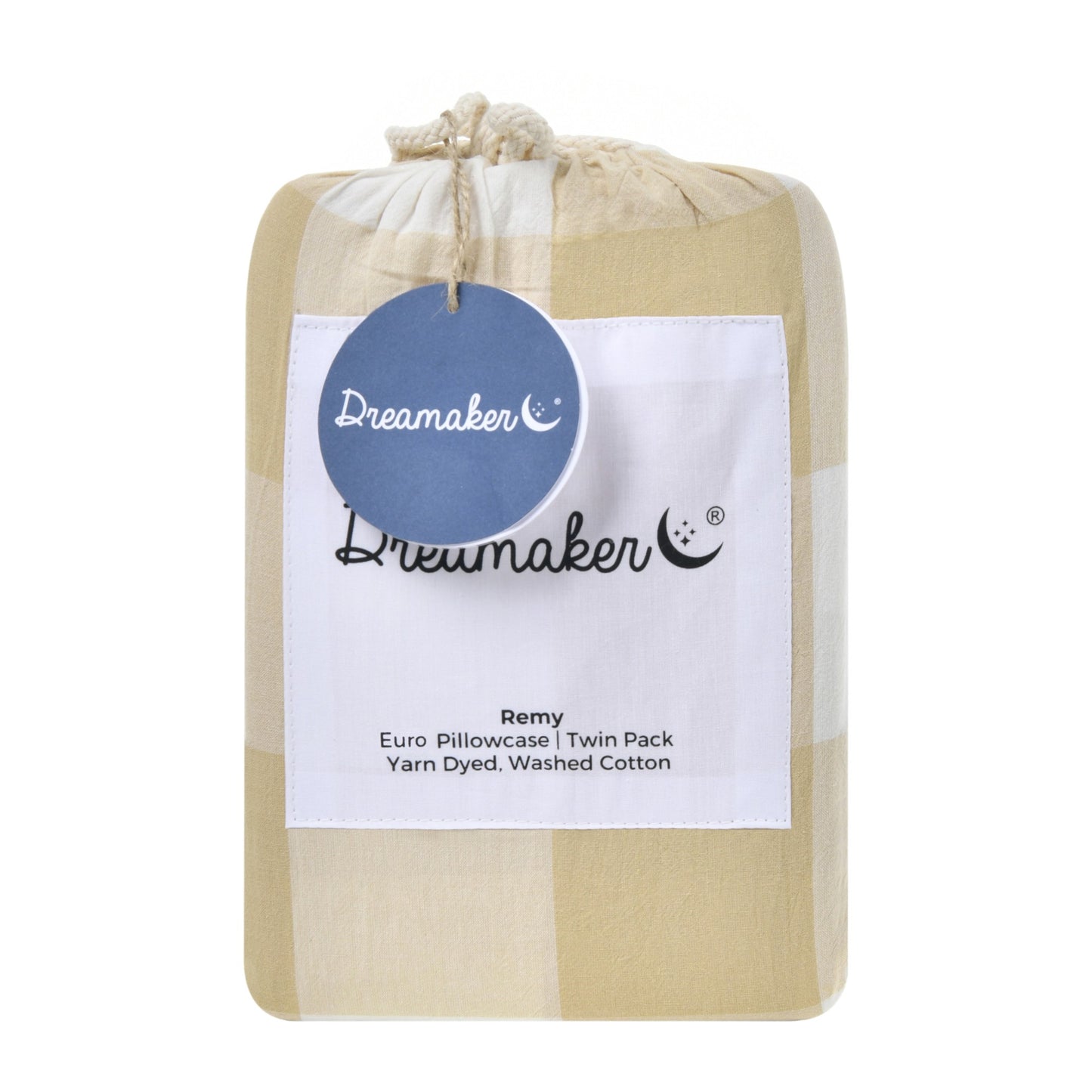 Remy Washed Cotton Yarn Dyed Check Euro Pillowcase Sand Twin Pack