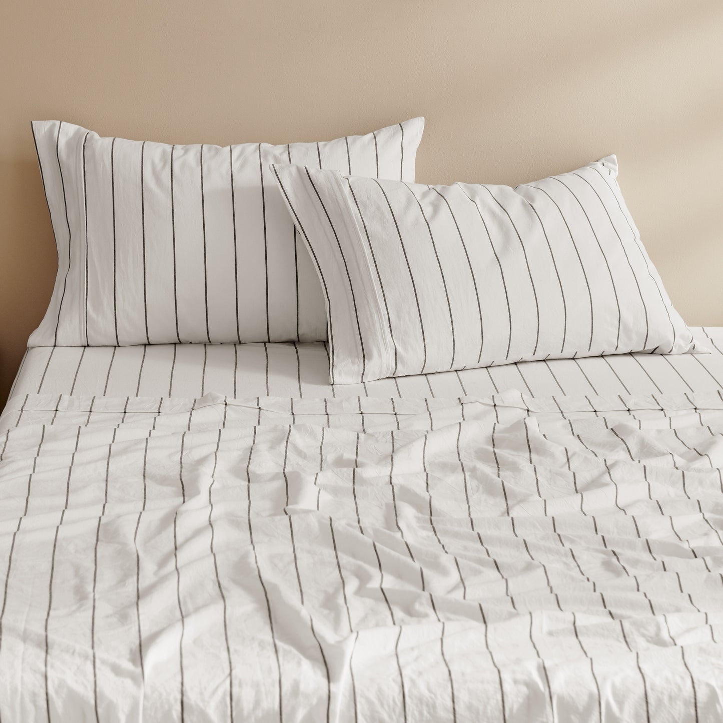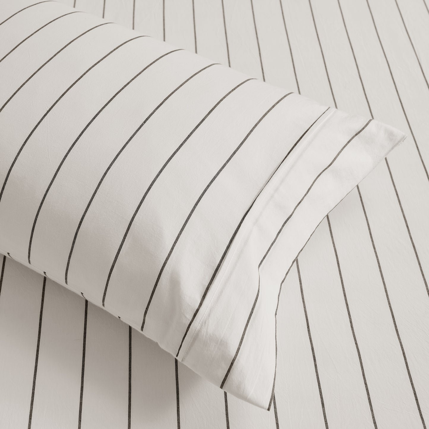 Rumi Washed Cotton Sheet Set White with Graphite Stripe