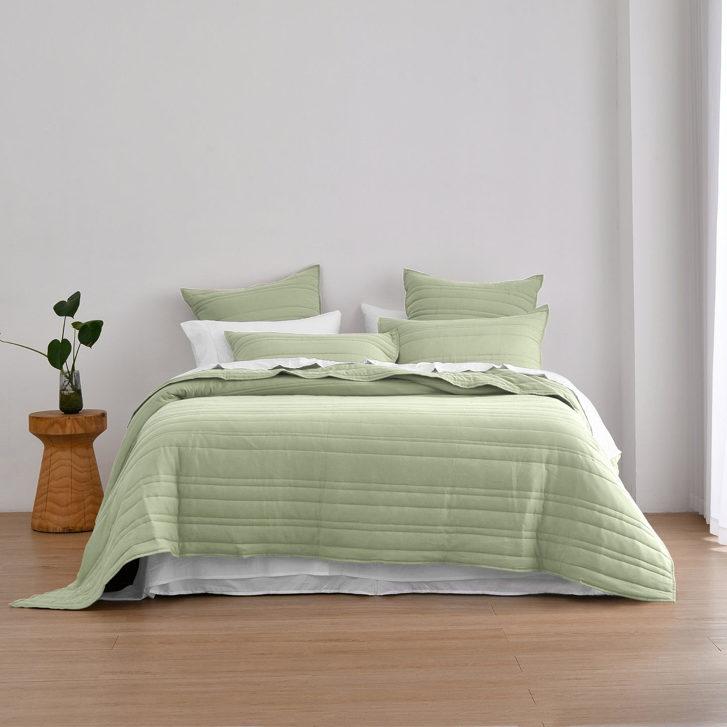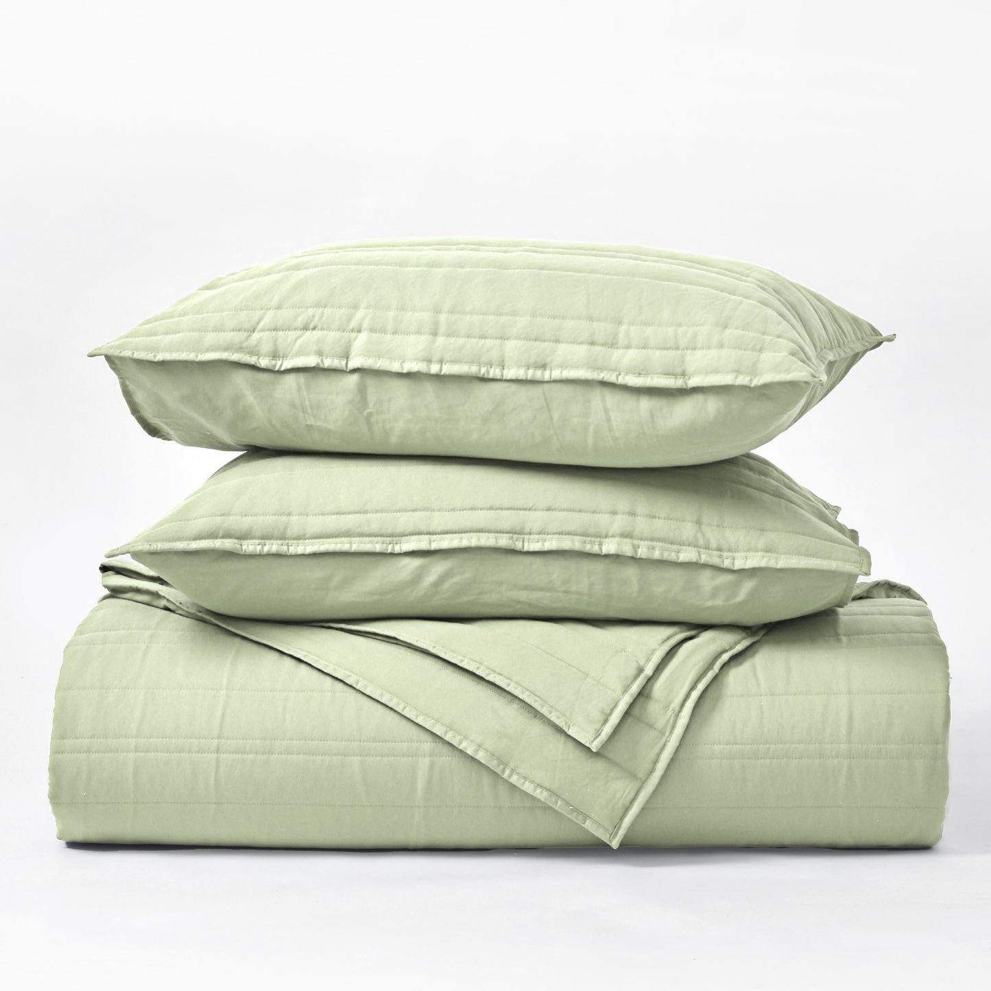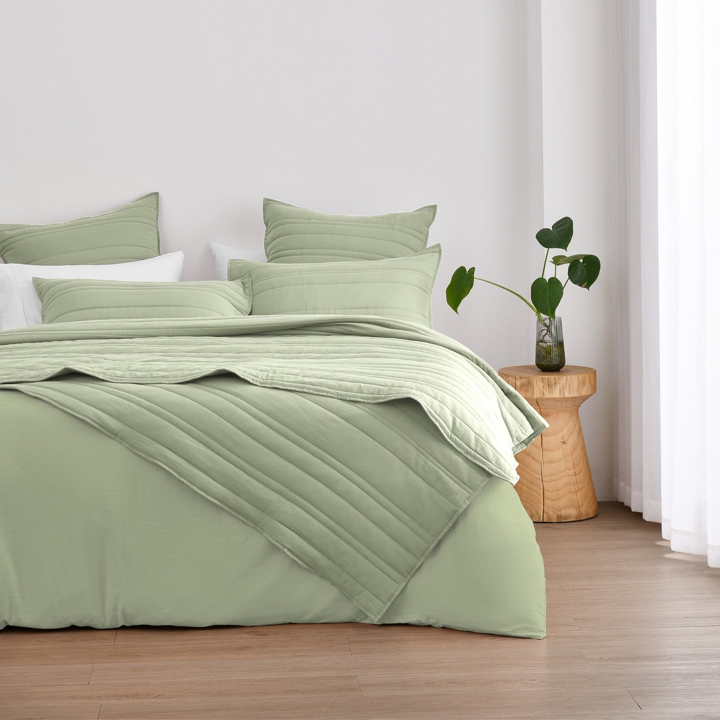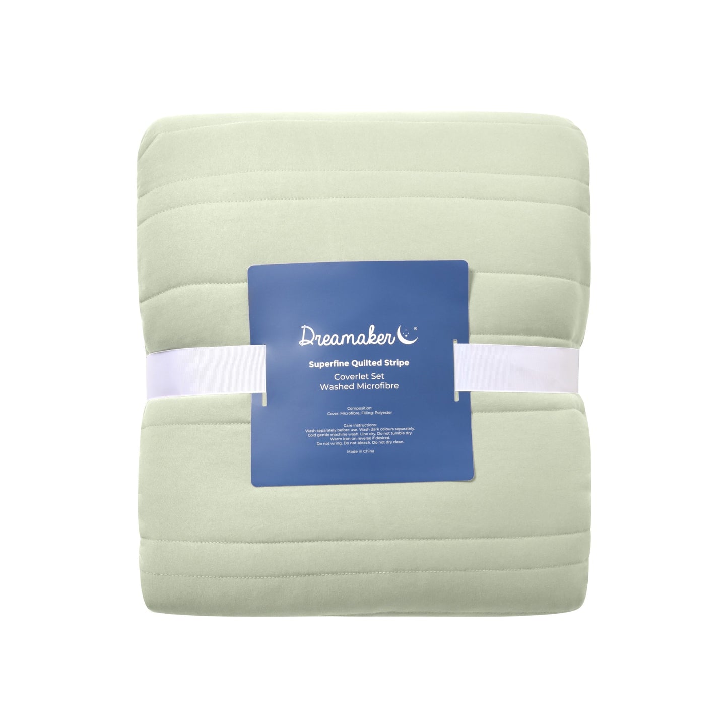 Superfine Washed Microfibre Stripe Quilted Coverlet Set Sage Green