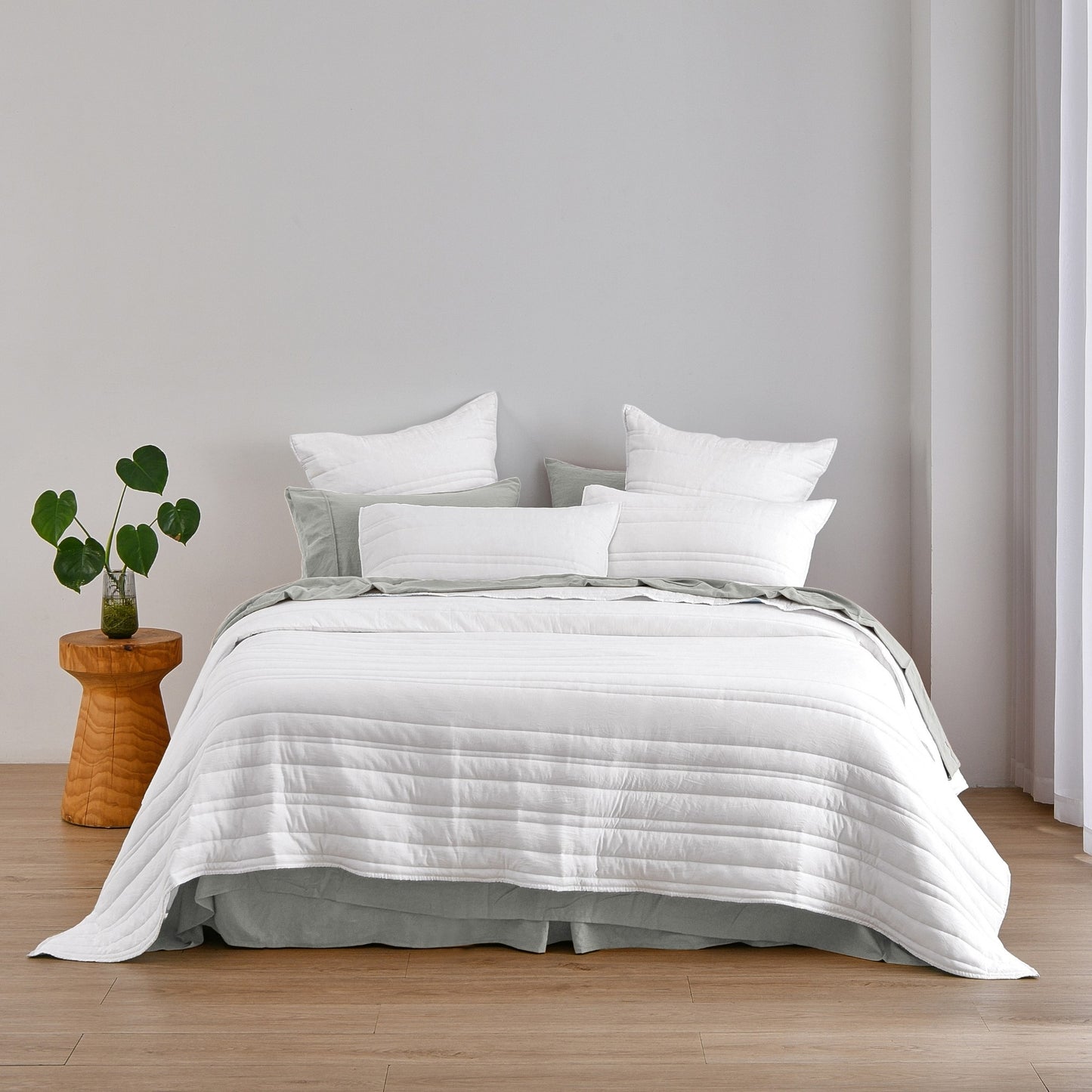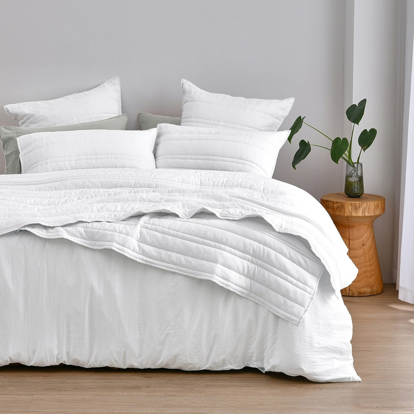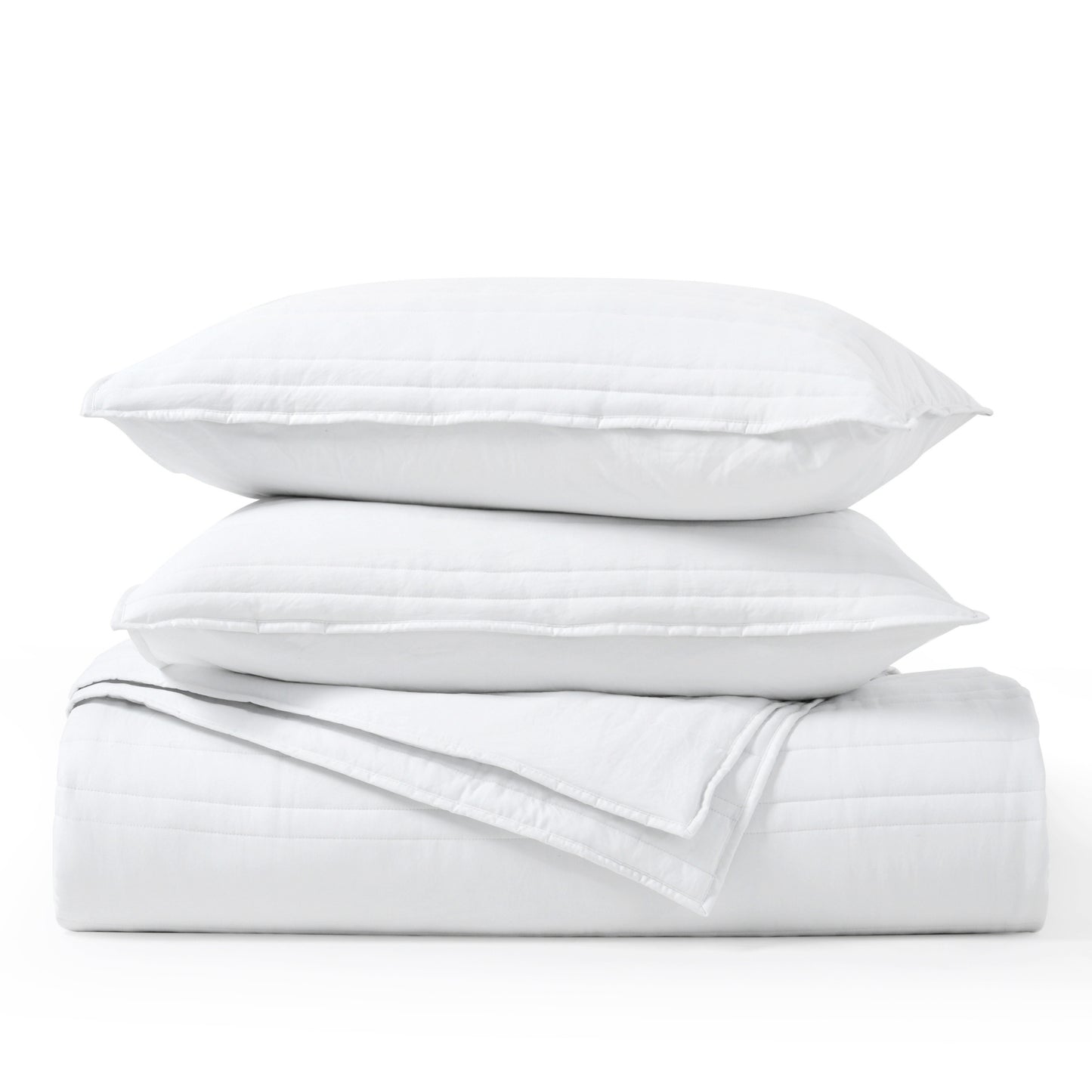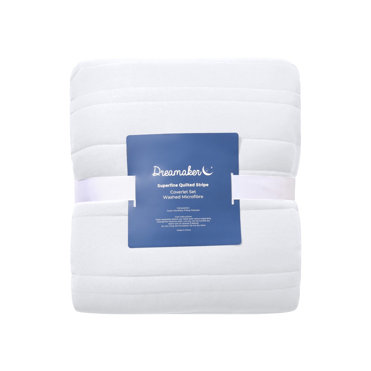 Superfine Washed Microfibre Stripe Quilted Coverlet Set White
