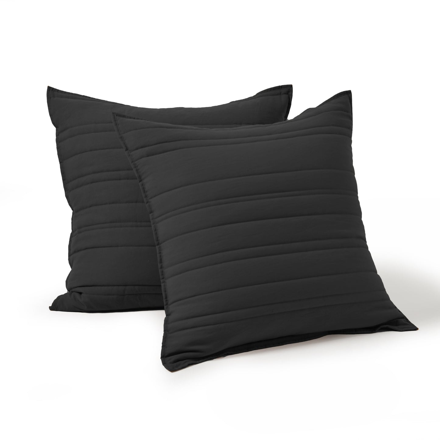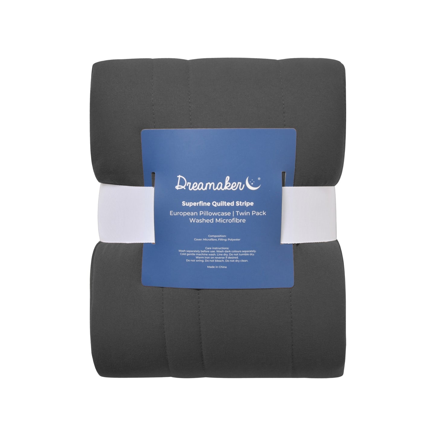 Superfine Washed Microfibre Stripe Quilted European Pillowcase Twin Pack Black