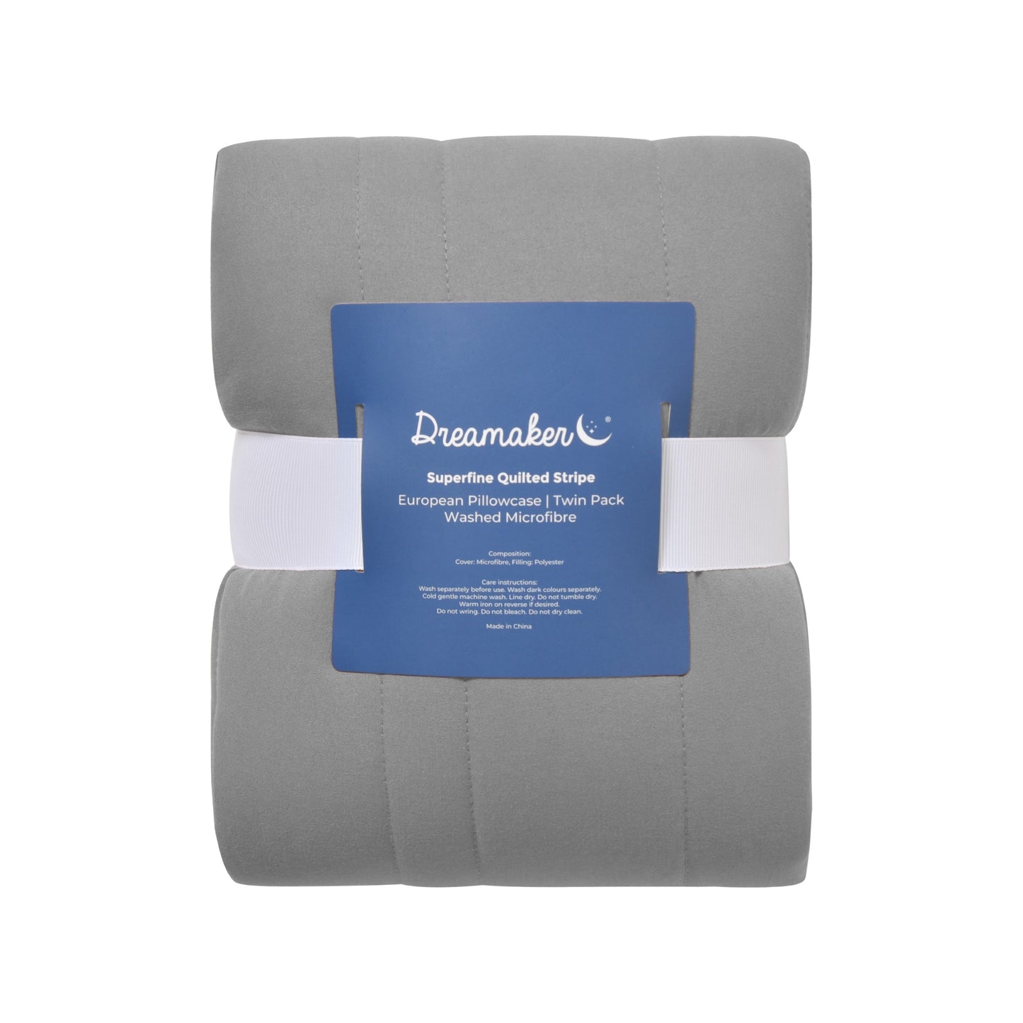 Superfine Washed Microfibre Stripe Quilted European Pillowcase Twin Pack Charcoal