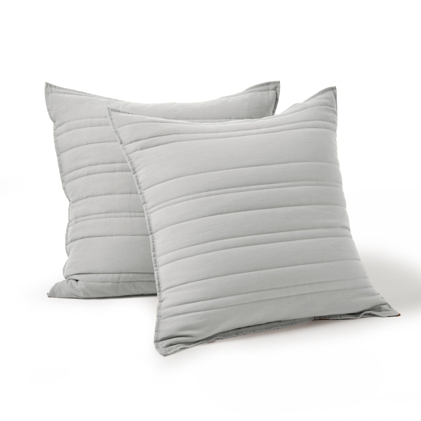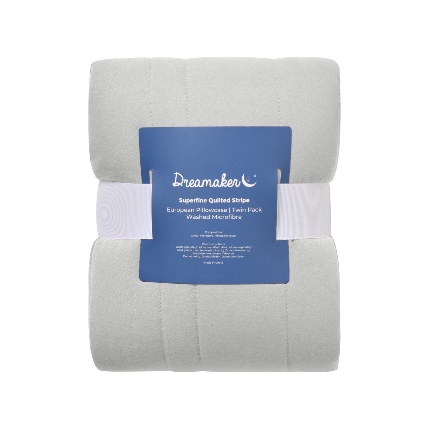 Superfine Washed Microfibre Stripe Quilted European Pillowcase Twin Pack Dove Grey