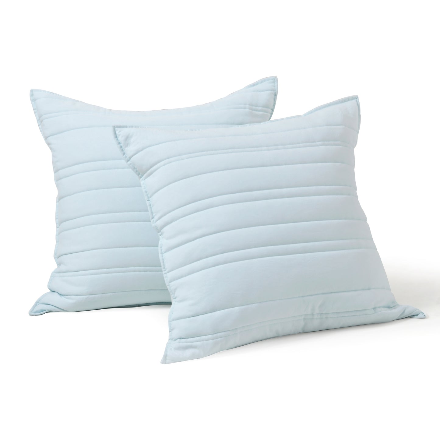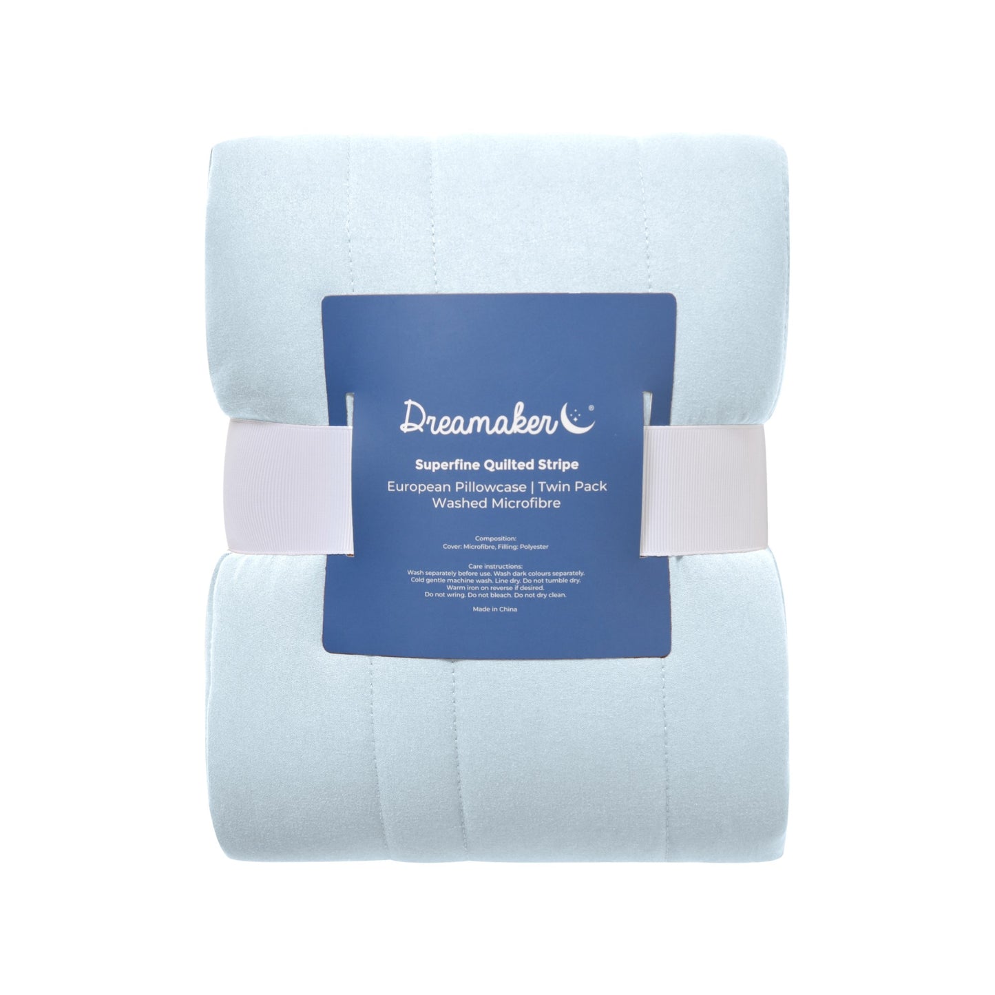 Superfine Washed Microfibre Stripe Quilted European Pillowcase Twin Pack Ice Blue