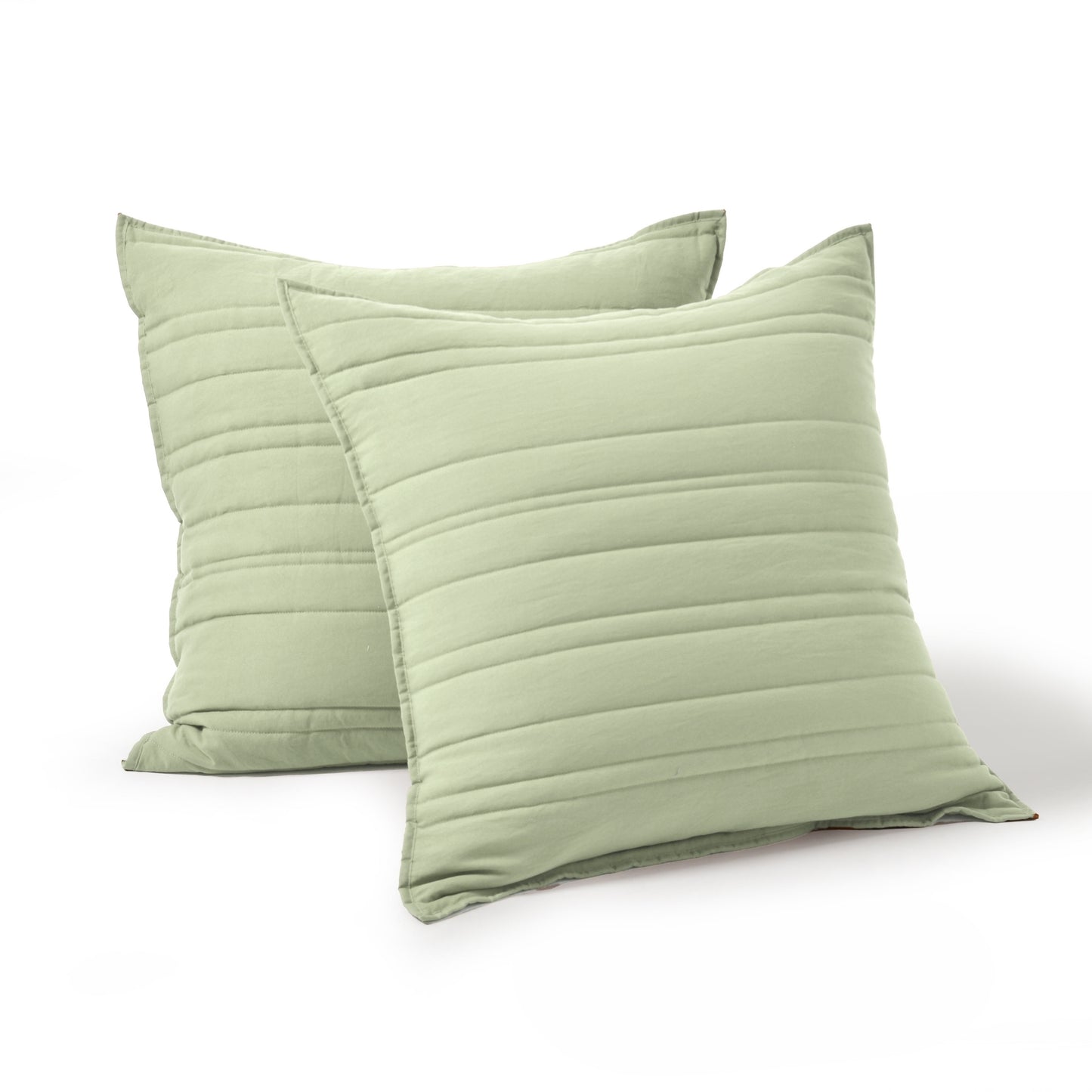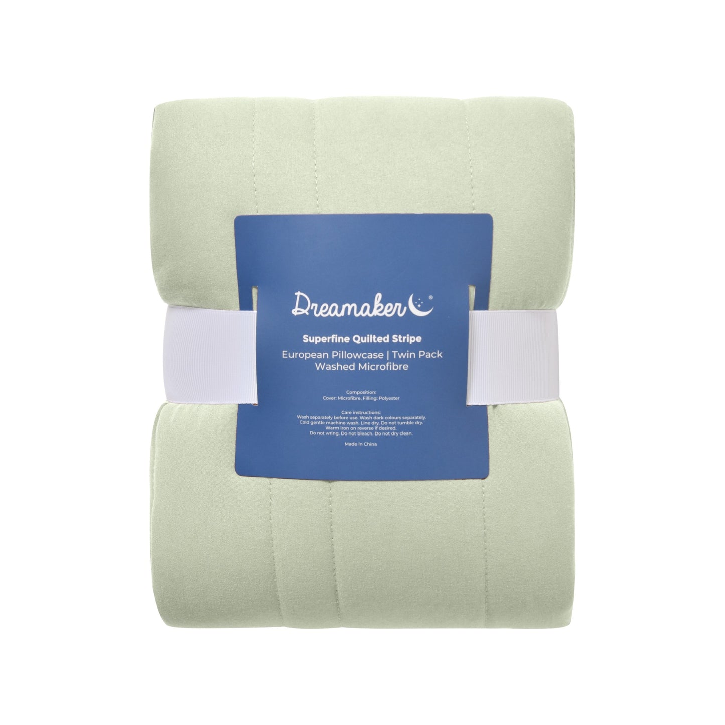 Superfine Washed Microfibre Stripe Quilted European Pillowcase Twin Pack Sage Green