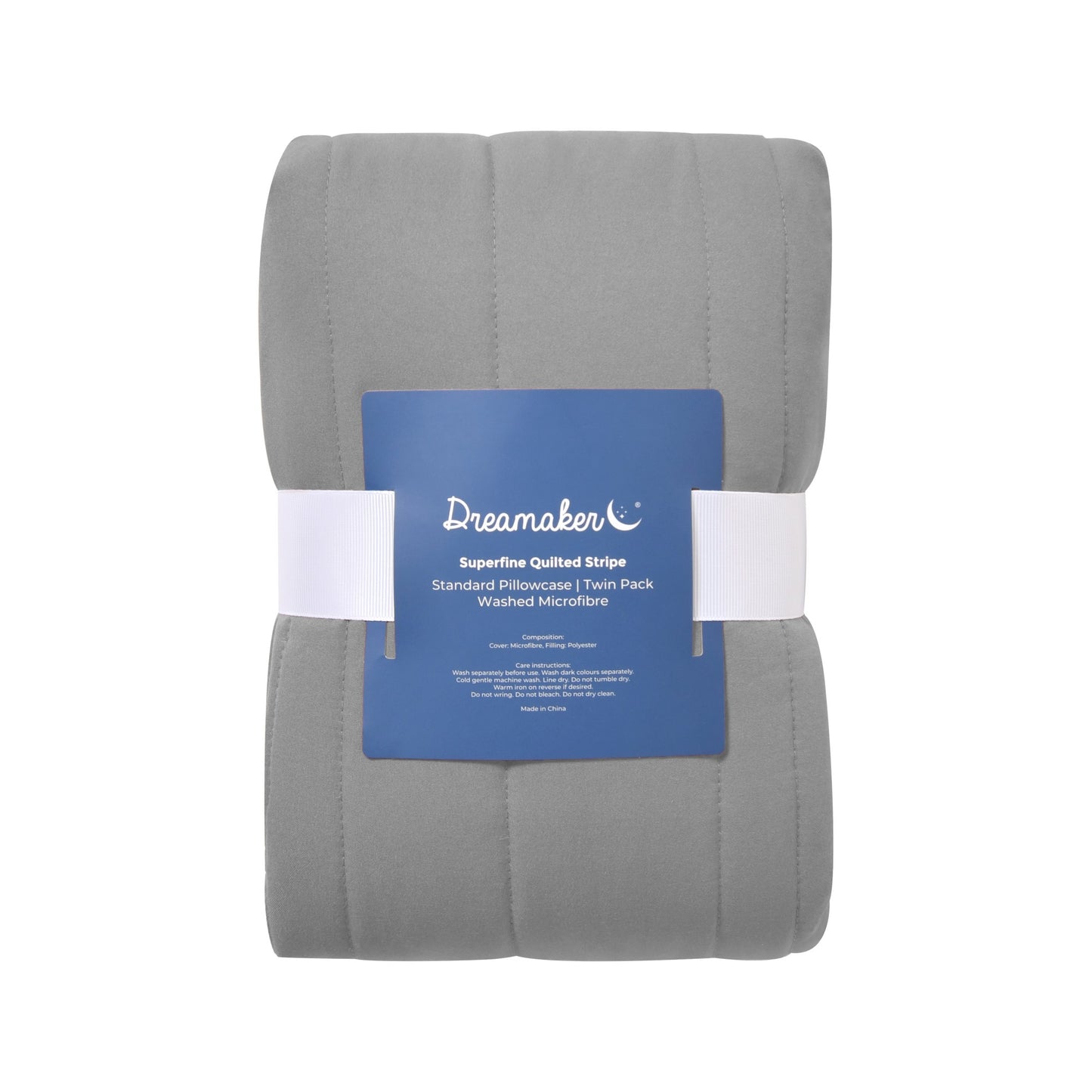 Superfine Washed Microfibre Stripe Quilted Standard Pillowcase Twin Pack Charcoal