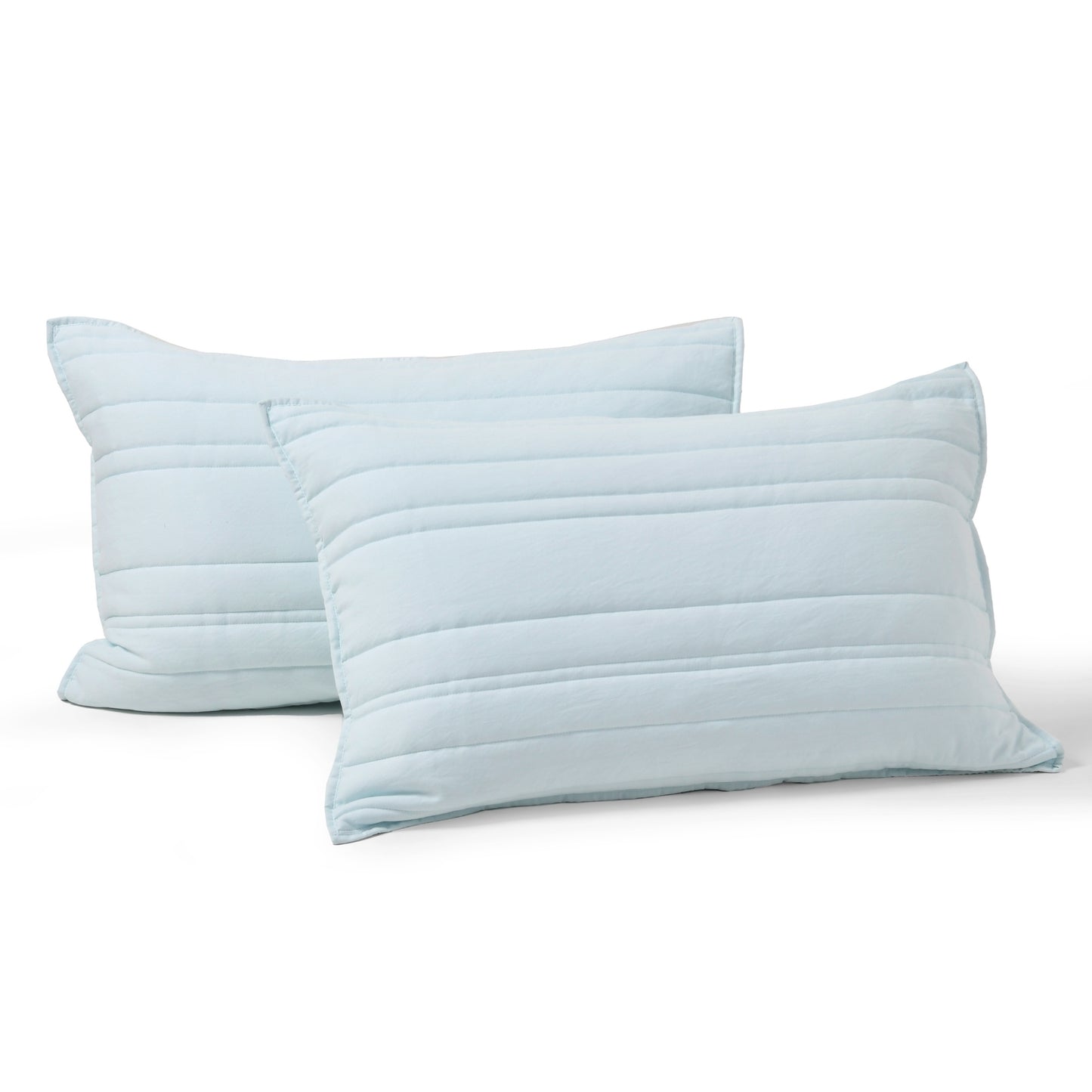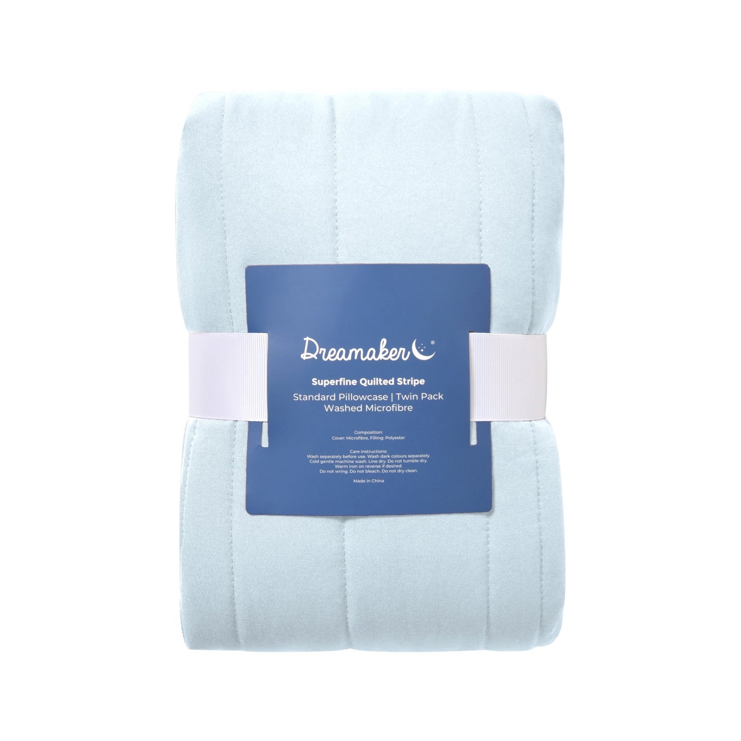 Superfine Washed Microfibre Stripe Quilted Standard Pillowcase Twin Pack Ice Blue