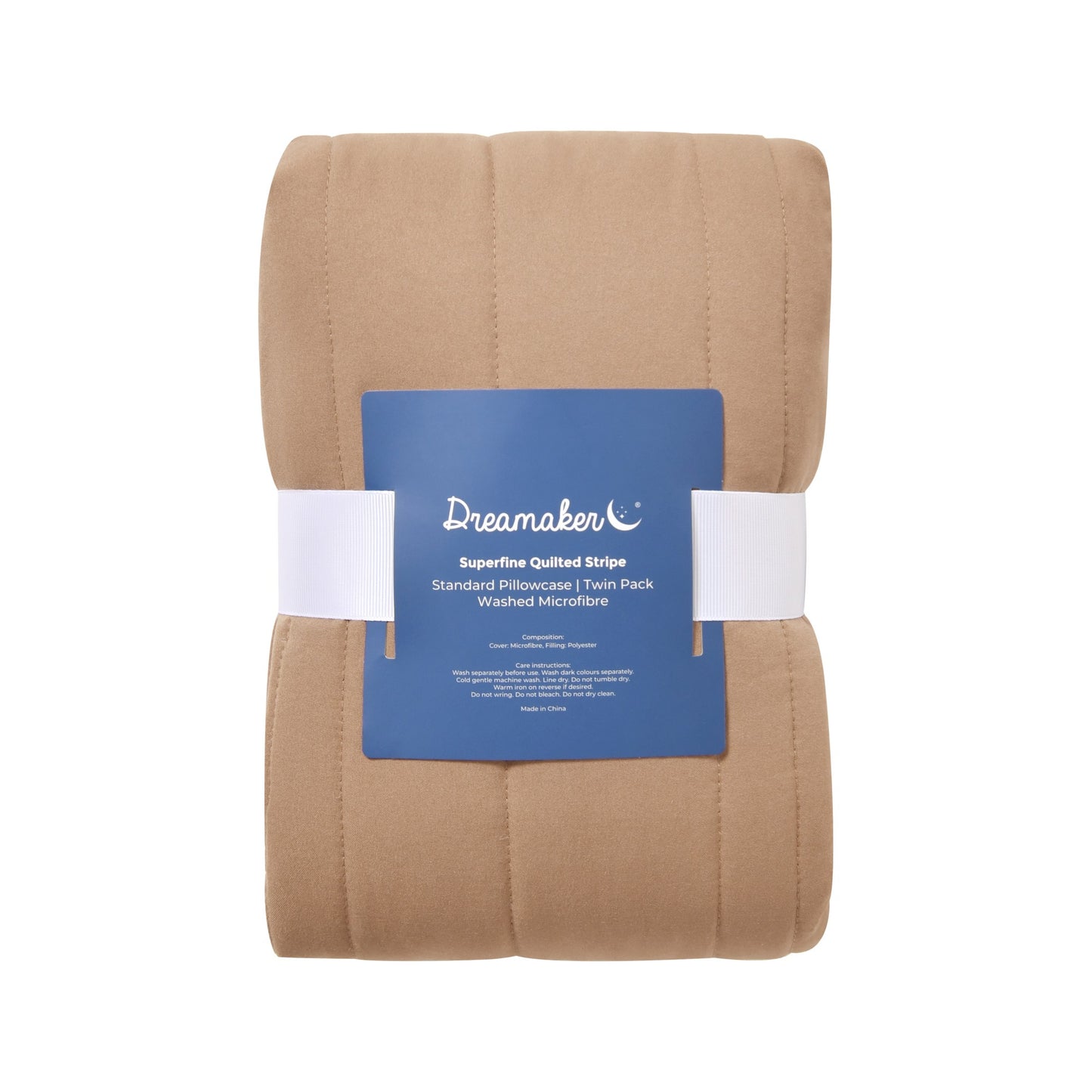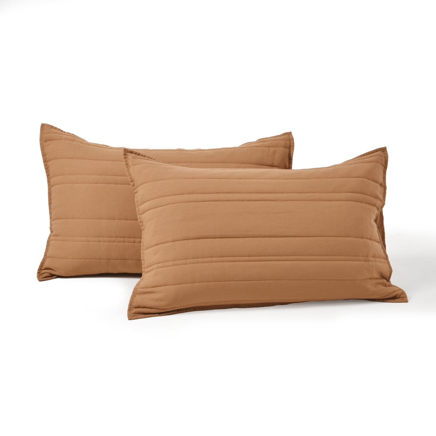 Superfine Washed Microfibre Stripe Quilted Standard Pillowcase Twin Pack Rust