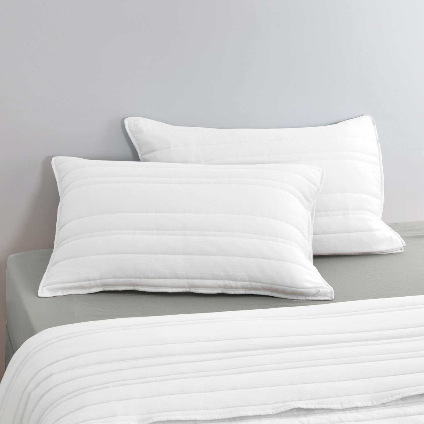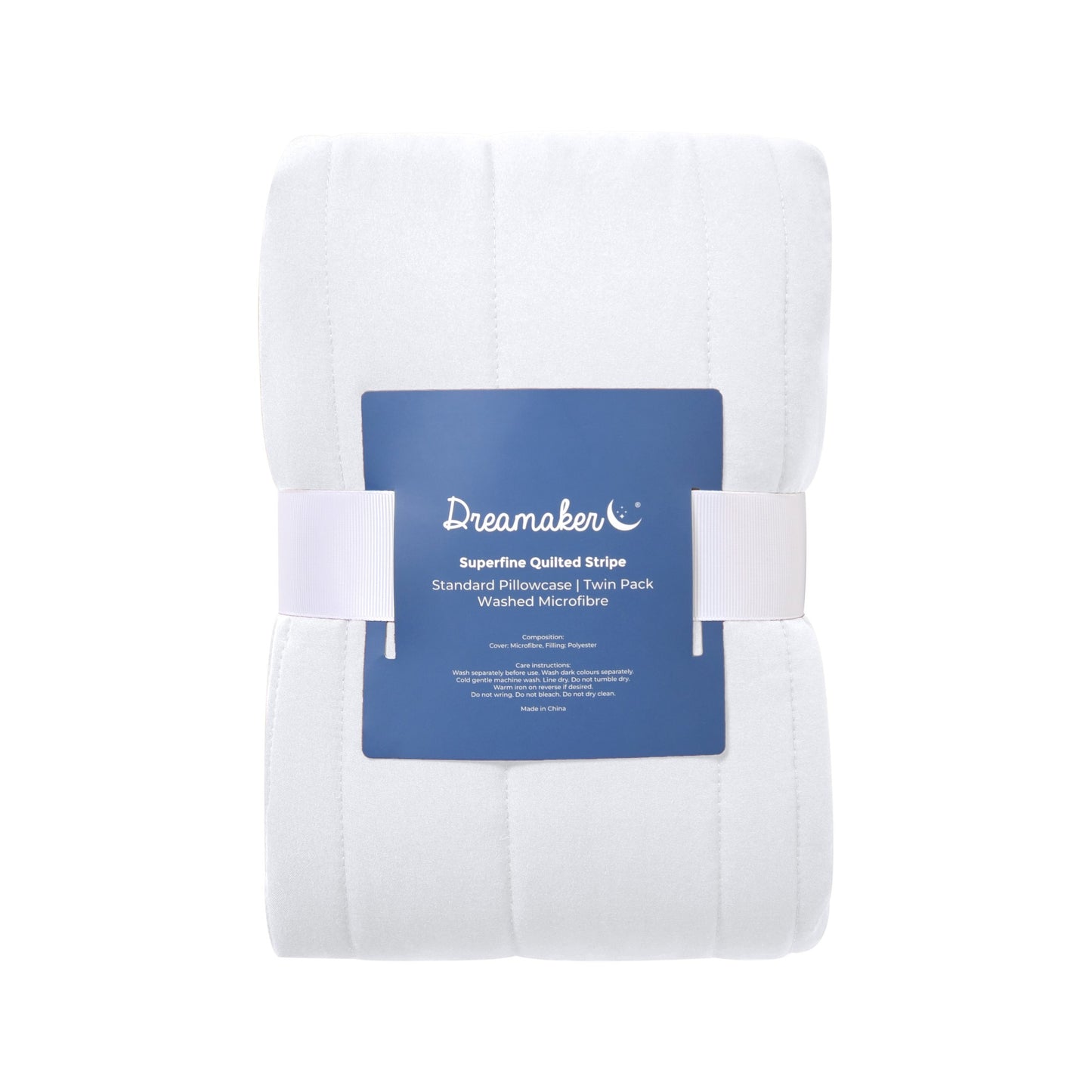 Superfine Washed Microfibre Stripe Quilted Standard Pillowcase Twin Pack White